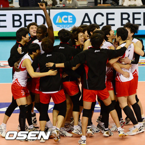 LIG는 29일 구미박정희체육관에서 열린 ‘2012-2013 NH농협 V-리그’ 남자부 삼성화재와의 경기에서 세트 막판의 집중력을 앞세워 3-0(27-25 25-22 34-32)으로 이겼다.