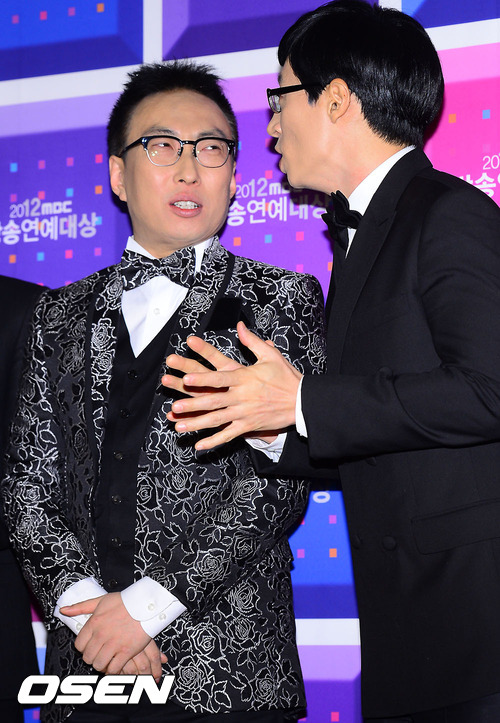 29일 오후 서울 여의도 MBC 사옥에서 열린 2012 MBC 방송연예대상에서 유재석과 박명수가 인터뷰를 하고 있다