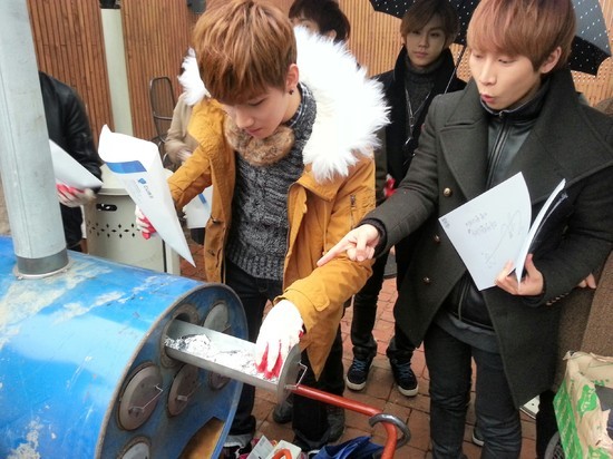 비투비와 노지훈은 지난 29일 오후 4시, 서울 청담동에 위치한 큐브카페에서 200여명의 팬들에게 미리 준비한 군고구마 등을 나눠주며 감사의 인사를 전했다.