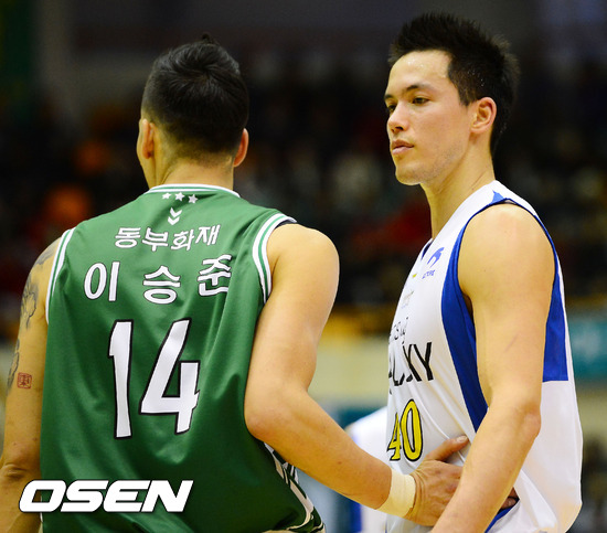 30일 오후 강원도 원주시 명륜동 원주 치악체육관에서 열린 KB 국민카드 2012-2013 프로농구 원주 동부 프로미와 서울 삼성 썬더스의 경기, 2쿼터 동부 이승준이 친동생인 삼성 이동준의 허리를 만지고 있다.