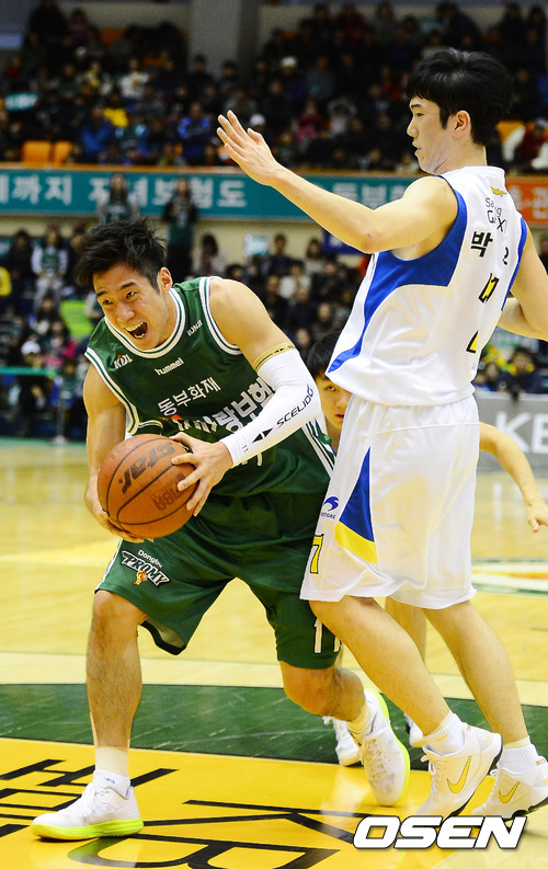 30일 오후 강원도 원주시 명륜동 원주 치악체육관에서 열린 KB 국민카드 2012-2013 프로농구 원주 동부 프로미와 서울 삼성 썬더스의 경기, 2쿼터 동부 이광재가 돌파를 하고 있다.