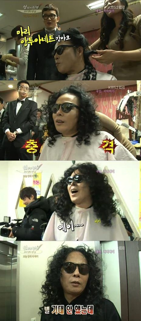 김국진은 올해가 가기 전에 하고 싶은 일로 '퍼머'를 들었다. 이에 '남격' 멤버들은 KBS 내 미용실로 갔다.