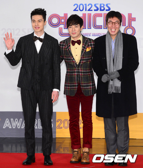 30일 오후 서울 상암동 SBS 프리즘타워에서 열린 '2012 SBS 연예대상' 레드카펫 행사에서 이동욱 붐 김영철이 포토타임을 갖고 있다.