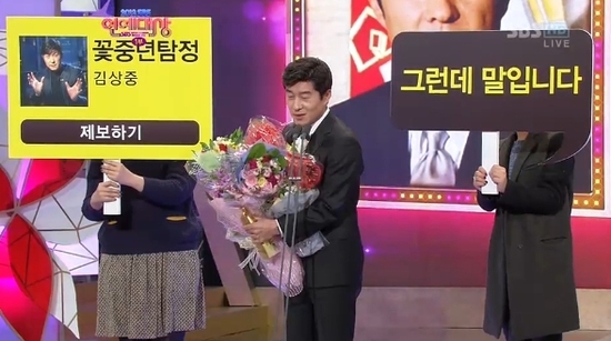 배우 김상중이 30일 서울 상암동 SBS 프리즘타워에서 열린 2012 SBS '연예대상' 시상식에서 '그것이 알고 싶다'를 진행한 공을 인정 받아 공로상을 수상했다.