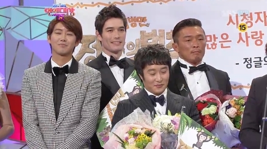 SBS 예능프로그램 '정글의 법칙'이 30일 서울 상암동 SBS 프리즘타워에서 열린 2012 SBS '연예대상' 시상식에서 최우수프로그램상을 수상했다.