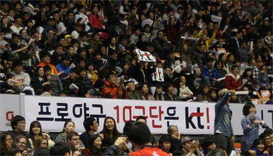 부산에서 프로농구단(부산 KT 소닉붐)을 운영하고 있는 KT는 홈 구장인 사직실내체육관을 찾은 시민의 말을 인용, "KT가 그간 농구단을 탁월하게 운영하던 노하우나 부산시민들에게 하고 있는 다양한 팬 서비스 등을 생각하면 당연히 프로야구단 운영도 매우 잘할 것이라고 믿어 의심치 않는다. 당연히 준비된 기업이 프로야구단을 운영해야 한다고 생각한다. 또한, 프로야구는 시장규모와 흥행조건이 제일 중요하다. 롯데 자이언츠가 이를 말해주고 있지 않는가"라고 되묻고는 "당연히 인구나 교통입지가 뛰어난 수원이 프로야구에 더 적합하다. KT와 수원은 최적의 조합 인 것 같다"고 강조했다.