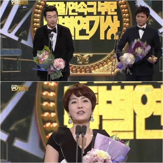 여자 수상자로는 같은 작품에 출연한 배우 김정난이 받았다. 김정난은 "올초 리딩하는 날 처음으로 감독님과 작가를 만났는데, 작가가 내게 신이 적어서 미안하다고 말하며 그렇지만 절대로 버리지 않겠다고 이야기 했었다. 그 얘기가 힘이 돼서 열심히 했고 작가의 의지까지 보태져 박민숙 캐릭터가 만들어진 것 같다"며 감격을 전했다.