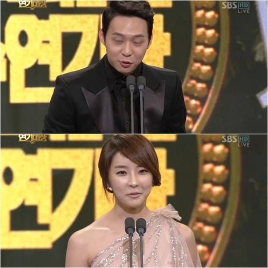 배우 박유천과 정유미가 31일 마포구 상암동 SBS 프리즘타워에서 열린 2012 SBS '연기대상' 시상식에서 드라마스페셜 부문 우수상을 수상했다.