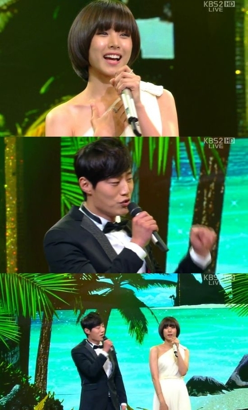 이희준과 조윤희는 31일 오후 서울 여의도 KBS홀에서 열린 2012 KBS 연기대상에서 사랑스러운 듀엣 무대를 선보여 객석의 박수를 받았다.
