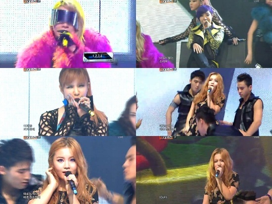 이날 2NE1은 이하이의 '1,2,3,4'를 씨엘의 개성 넘치는 랩으로 시작했다. 이후 멤버들은 2NE1의 독특한 색깔이 고스란히 들어있는 '1,2,3,4' 무대를 펼쳤다.