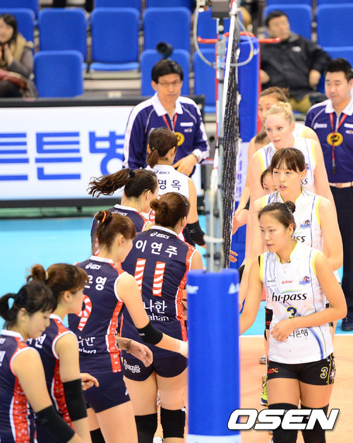 경기 종료 후 양팀 선수들이 인사를 나누고 있다./sunday@osen.co.kr