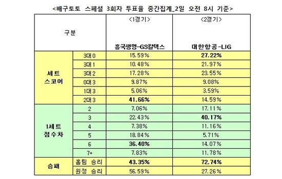 2012-2013시즌 프로배구 대상 배구토토 스페셜 3회차 중간집계 결과