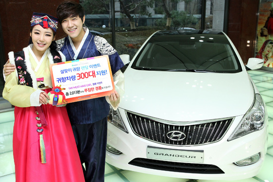 이용자들은 아반떼, 그랜저, 싼타페 중 원하는 차종을 선택해 응모할 수 있으며 응모자 중 추첨을 통해 총 300명에게 내달 7일부터 14일까지 7박 8일 동안 설 귀향 차량을 무상으로 제공한다. 또한 당첨자에게 선물도 함께 제공할 예정이며 2월 4일 현대차 및 지마켓, 옥션 홈페이지에서 발표한다.