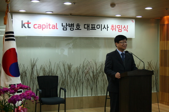 [OSEN=최은주 인턴기자] KT캐피탈은 2012년 12월 31일 주주총회를 열어 신임 대표이사로 남병호(47) 전 ㈜케이티 시너지개발담당을 선임하고, 2013년 1월 2일 삼성동 본사에서 임직원이 참석한 가운데 대표이사 취임식을 진행했다고 밝혔다.