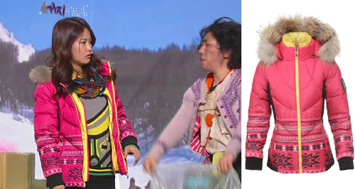 ‘개그계 김태희’ 김지민은 KBS2 '개그콘서트‘에서 E브랜드의 패딩을 입고 등장해 눈길을 끌었다. 이 패딩은 비비드한 핑크 컬러가 시선을 사로잡으며, 눈꽃 무늬의 노르딕패턴이 포인트로 된 사랑스러운 아이템이다.