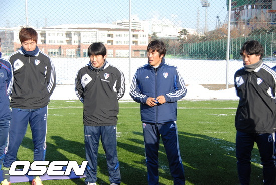 이날 날씨는 영하 10도. 오후 3시에 시작했음에도 불구하고 날씨는 매서웠다. 추운 날씨에도 불구하고 선수들 몸에서는 땀이 흘러 내렸다. 신체의 주요 근육을 강하게 자극하는 코어 트레이닝으로 워밍업을 마친 뒤 600m 가까이 되는 트랙 10바퀴를 돌도록 했다. 이후 볼을 이용한 마무리 훈련으로 감각을 깨웠다. 땀이 비오듯 떨어질 정도로 강도 높은 훈련이 이어졌다.