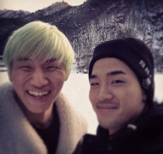 [OSEN=박정선 인턴기자] 그룹 빅뱅의 태양과 대성이 하얀 설경을 배경으로 촬영한 함박웃음 ‘셀카’를 공개했다.