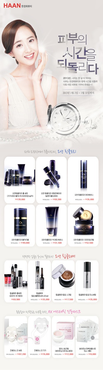한경희뷰티가 2013년 새해를 맞이해 ‘나이는 한 살 더 해도 피부 나이는 어리게 가꾸자’는 콘셉트의 프로모션을 31일까지 진행한다.