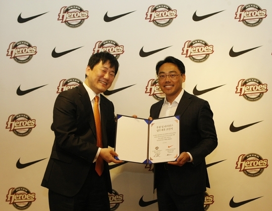 넥센 히어로즈(대표이사 이장석)는 세계적인 스포츠 브랜드 나이키와 3일(목) 오후 1시 역삼동에 위치한 나이키 코리아 본사에서 용품 후원 관련 계약을 체결했다.
