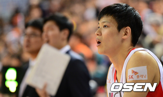 2쿼터 SK 김선형이 아쉬운 표정으로 경기를 지켜보고 있다.