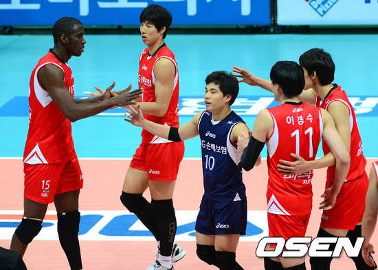 LIG손해보험은 3일 인천도원실내체육관에서 벌어진 2012-2013시즌 NH농협 V리그 남자부 3라운드 최종전에서 대한항공을 세트스코어 3-1(25-21, 21-25, 25-19, 25-16)로 물리쳤다.