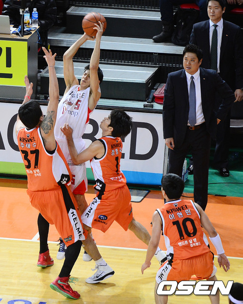 4쿼터 SK 김선형이 전자랜드 주태수 정병국의 수비를 피해 패스할 곳을 찾고 있다./jpnews@osen.co.kr
