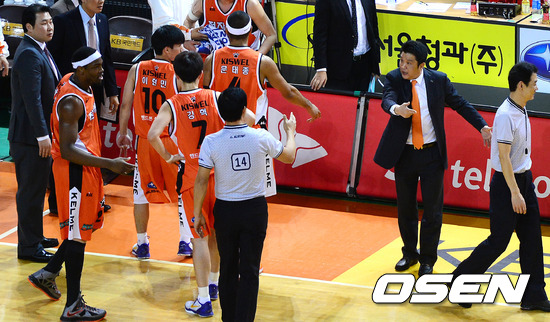 4쿼터 전자랜드 유도훈 감독이 심판 판정에 불만을 나타내고 있다./jpnews@osen.co.kr