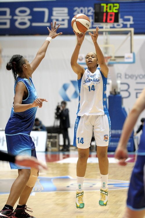 무서운 상승세로 단일리그 출범 이후 첫 플레이오프 진출 확정이라는 쾌거를 낳은 우리은행에는 든든한 '언니'가 있었다. 우리은행의 상승세를 이끄는 외국인 용병 티나 톰슨(38)이 그 주축이다.