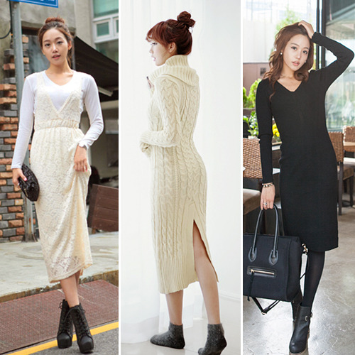 긴 꼬리를 가진 뱀처럼 긴 실루엣의 니트 원피스와 코트가 눈길을 끈다. 코트나 치마의 자락이 발목까지 길게 내려오는 길이에서부터 무릎을 살짝 덮는 스타일까지 다양하다.
