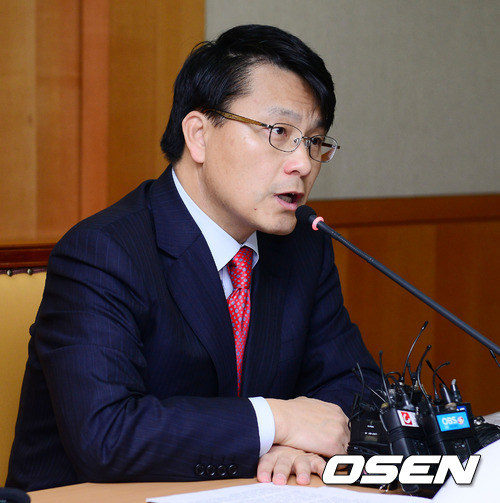 4일 오전 서울 종로구 신문로 대한축구협회 축구회관에서 열린 윤상현 국회의원(51, 새누리당·인천 남구을)의 제52대 대한축구협회장 선거에 공식 출마 선언 기자회견에서 윤상현 의원이 말을 하고 있다.