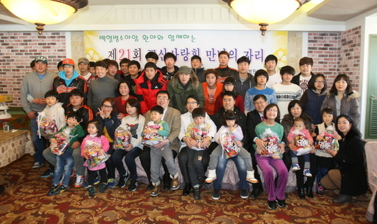 롯데 선수단은 4일 고신대 복음병원을 찾아 소아암 어린이 돕기 행사를 실시했다.