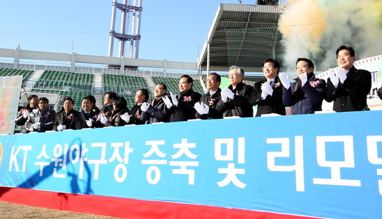 [OSEN=최은주 인턴기자] 10구단 창단을 노리고 있는 KT가 홈 구장으로 쓰겠다고 밝힌 수원야구장(수원시 장안구 조원동)의 증축 리모델링 기공식이 4일 열렸다.