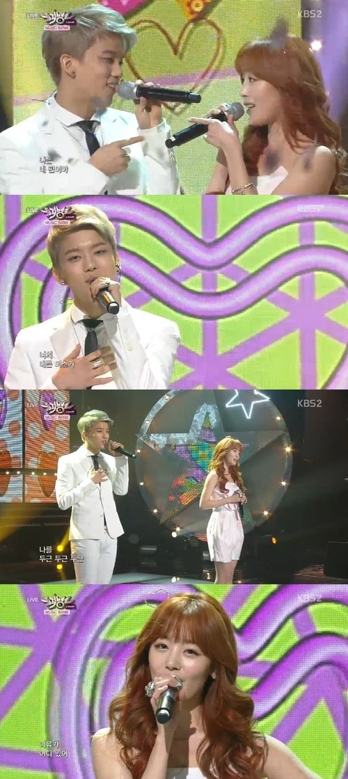 그룹 시크릿의 선화와 B.A.P의 영재가 달달한 커플송을 부르며 사랑스러운 무대를 선보였다.