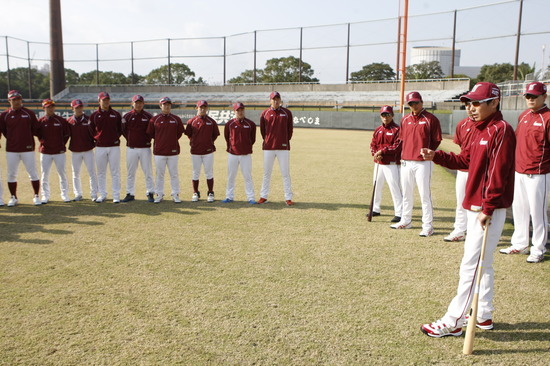 지난해 11월 일본 가고시마에서 마무리 훈련을 진행하고 있는 넥센 선수단. 넥센 히어로즈 제공.