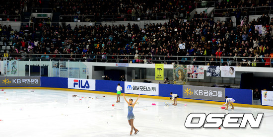 김연아가 쇼트 연기를 마치고 팬들의 환호에 인사를 하고 있다./jpnews@osen.co.kr