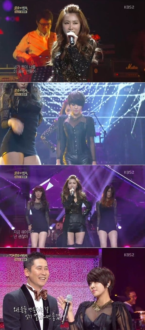 한편 이날 '댄싱퀸! 엄정화' 1편으로 진행된 '불후의 명곡'에는 손호영, 체리필터, 유미, 정동하, 스윗소로우, 박현빈, 아이비, 윤형렬, 제아-나르샤, 투빅, UV,틴탑이 출연해 화려한 무대를 선보였다.