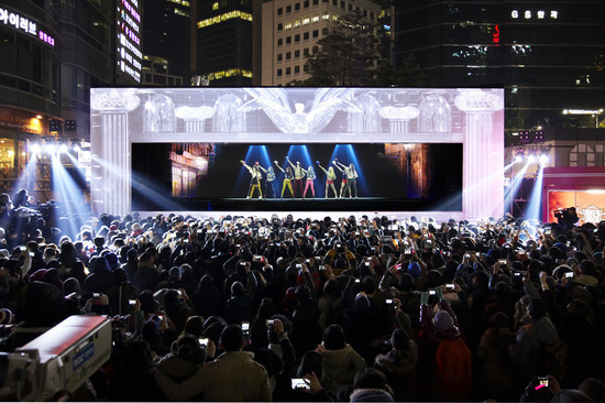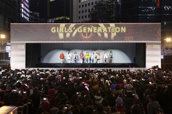 소녀시대가 지난 5일 서울 강남역사거리 엠스테이지에서 열린 'V콘서트'를 열어 일대를 마비시켰다고 소속사 SM엔터테인먼트가 6일 밝혔다.