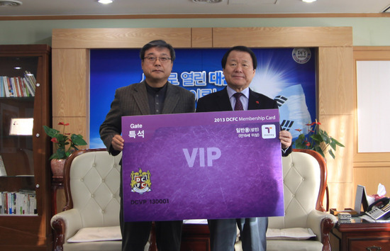 대전 시티즌 구단주인 염홍철 대전광역시장이 2013시즌 대전시티즌의 첫 연간회원으로 가입하며 올해도 축구사랑에 앞장설 것을 약속했다.