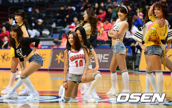 6일 오후 경기 고양체육관에서 열린 'KB 국민카드 2012-2013 프로농구' 고양 오리온스와 울산 모비스의 경기, 경기에 앞서 오리온스 치어리더가 화려한 공연을 펼치고 있다.