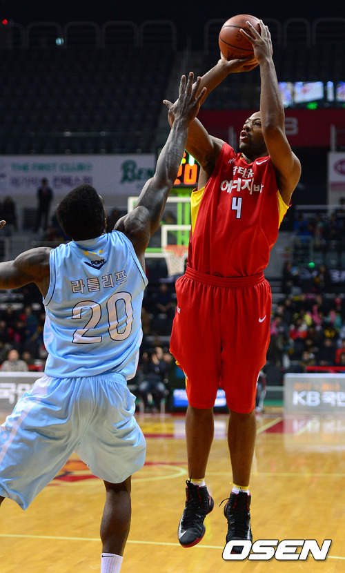 6일 오후 경기 고양체육관에서 열린 'KB 국민카드 2012-2013 프로농구' 고양 오리온스와 울산 모비스의 경기, 2쿼터 오리온스 윌리엄스가 모비스 라틀리프의 슛블록을 피해 점프슛을 시도하고 있다.