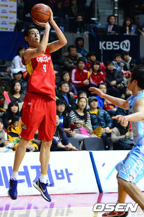 6일 오후 경기 고양체육관에서 열린 'KB 국민카드 2012-2013 프로농구' 고양 오리온스와 울산 모비스의 경기, 2쿼터 오리온스 최진수가 3점슛을 시도하고 있다.