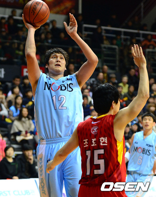 6일 오후 경기 고양체육관에서 열린 'KB 국민카드 2012-2013 프로농구' 고양 오리온스와 울산 모비스의 경기, 3쿼터 모비스 함지훈이 점프슛을 시도하고 있다.
