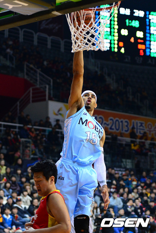 6일 오후 경기 고양체육관에서 열린 'KB 국민카드 2012-2013 프로농구' 고양 오리온스와 울산 모비스의 경기, 4쿼터 모비스 문태영이 레이업슛을 시도하고 있다.