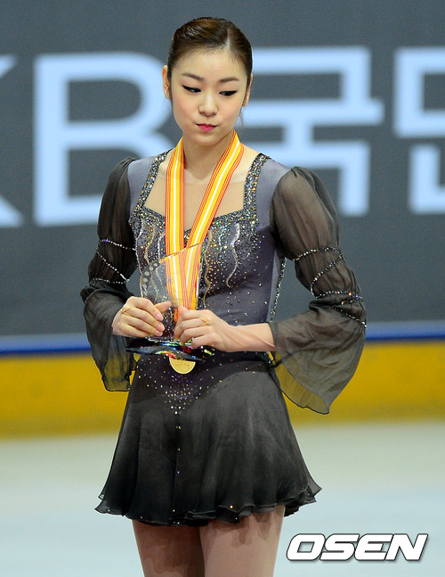 김연아가 시상식에 올라 메달과 트로피를 건네 받고 있다./jpnews@osen.co.kr