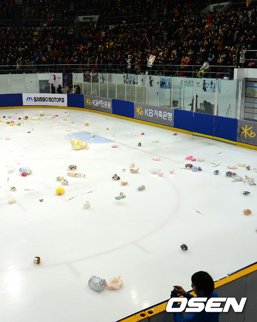 김연아의 연기가 마치자 팬들이 꽃다발과 선물을 경기장에 던지고 있다./jpnews@osen.co.kr