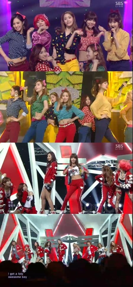 소녀시대는 6일 오후 3시 35분 방송된 SBS '인기가요'에서 신곡 '댄싱퀸(Dancing Queen)'과 '아이 갓 어 보이(I got a boy)'의 컴백 무대를 가졌다.