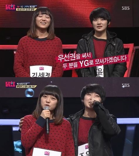 양현석은 "조금만 더 가다듬으면 좋은 가수가 될 수 있다"며 "우선권을 써서 YG로 둘 다 데려가겠다"고 밝혔다.
