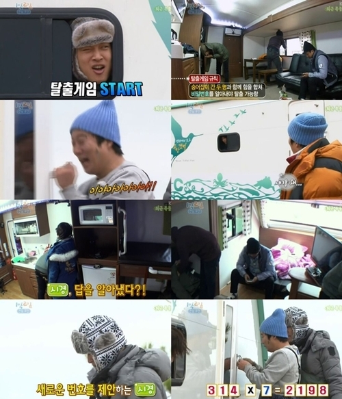 이수근과 김종민이 얻어낸 힌트는 '7'과 'X'. 성시경은 특유의 영리함으로 'X'가 곱하기라는 것을 알아차렸고 이내 자물쇠 비밀번호를 알아내 캠핑카 탈출에 성공해 브레인으로서의 면모를 아낌없이 드러냈다.