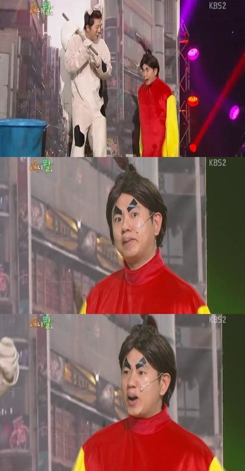 박성호는 6일 오후 방송된 KBS 2TV '개그콘서트(이하 '개콘')'에서 ‘애니뭘’이라는 새로운 코너에서 모바일게임 ‘앵그리버드’ 분장으로 등장했다.