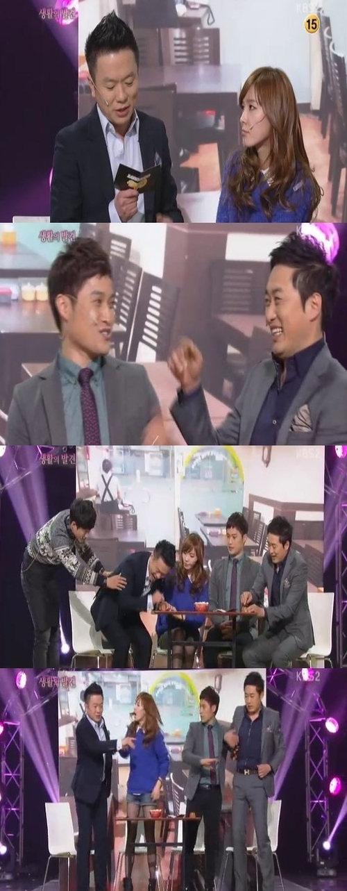 신보라는 6일 오후 방송된 KBS 2TV '개그콘서트(이하 '개콘')'의 ‘생활의 발견’ 코너에서 훈훈한 남자스타 대신 컬투가 등장하자 당황한 모습을 보였다.